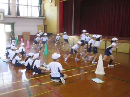 基本的な動きやリズムを確認した後、反復横跳びをしました。
