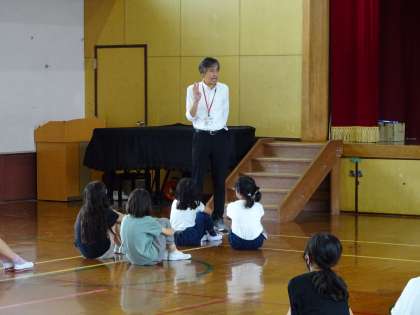中間休みに、部活動開講式を体育館で行いました。校長先生からお話を聞いた後、それぞれの部で集まって注意を聞きました。