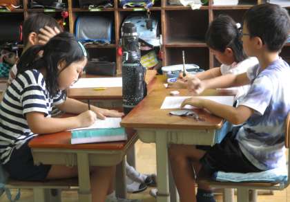 久し振りの学校、友だちと夏休みの思い出を交流したり、音読したり、2学期の目標を書いたりしました。