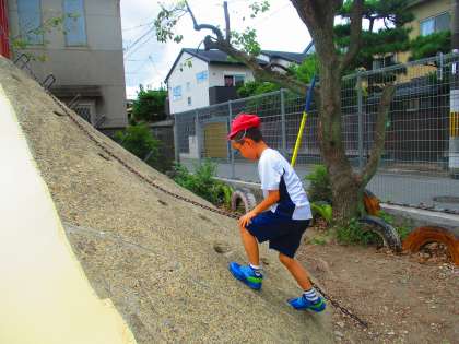 2学期になり、紫明富士が新しく生まれ変わりました。使い方を聞いた後、何回も登って滑ってを楽しんでいました。