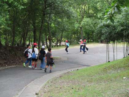 坂道や自然のある所内をめぐっています。