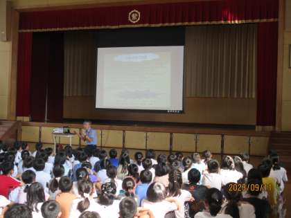 暑い中でしたが、各クラスの児童は、しっかりと話を聞いていました。