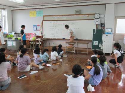 自分たちの学校をよくしようと、5時間目に各「なかよしグループ」が集まり話し合いをしました。自分たちが考えたアイデアを出し合い、最終的に一つにまとめました。10月10日には、決めたことについて振返りをします。「こうすると学校がよくなるんじゃない」とか、「これならがんばれそうだね」などなど、リーダーを中心に対話が深まっていました。