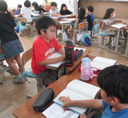 前回の実験で、乾電池・ソケット・豆電球を使い明かりをつけた子どもたち。こうした実験での気づきを、理科の用語を使って話したり文章で書いたりしました。