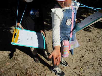 生活科の学習で、秋のものを探しに船岡山へ行きました。どんぐりやまつぼっくりなど、秋の宝物をたくさん見つけられました。集めたもので、おもちゃや楽器を作ってみたい!と、わくわくした様子です。