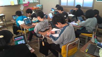 社会では、輸送と貿易のまとめとして、これからの課題や日本の取組について調べ学習に取り組みました。