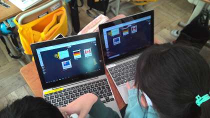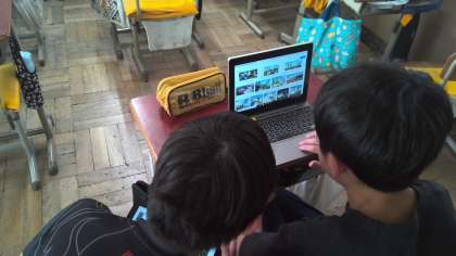 15か国からペアで一つの国を選び、その国でできることを調べてロイロノートを使ってクイズを作成しています。