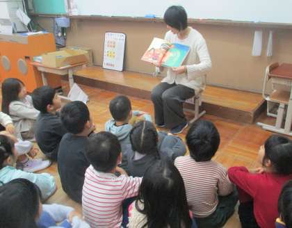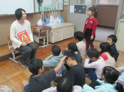 担任以外の先生が、人権にまつわる絵本を持って、読み聞かせにきてくださいます。