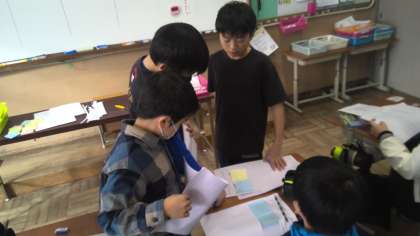 この時間は、同じテーマの友だちと交流をして自分の意見に生かす活動をしました。