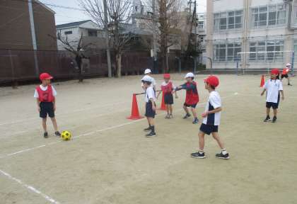 寒さもだんだん厳しくなってきました。体育科では、「ボールけりあそび」の学習をしています。寒いですが、運動場で元気いっぱい走り回っている姿が見られます。寒さに負けず、これからも学習を楽しんでいきましょう。