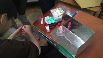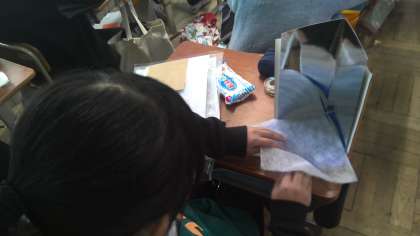 セット以外で使いたいものを準備し、それぞれがアイデアスケッチをもとに作り出しています。