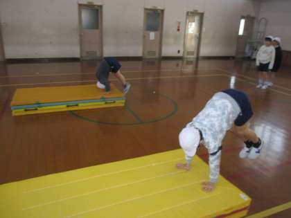 その前転の動きを軸に、少しずつ動きを追加していきました。