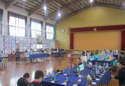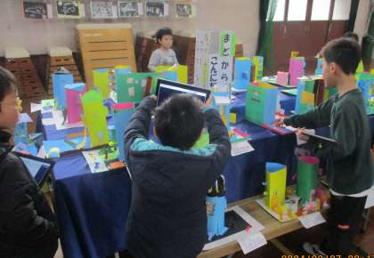 紫明小学校では、27日(火)〜29日(木)に図画工作科の作品展を開催しています。2年生はGIGA端末を持って鑑賞しました。各学年の作品で、自分が「いいな」と感じた作品を写真で写し、ロイロノートで鑑賞カードを作りました。高学年の作品を見ると、「自分たちもこんなの作れるのかな?」と話しながら、じっくり鑑賞している姿が見られました。