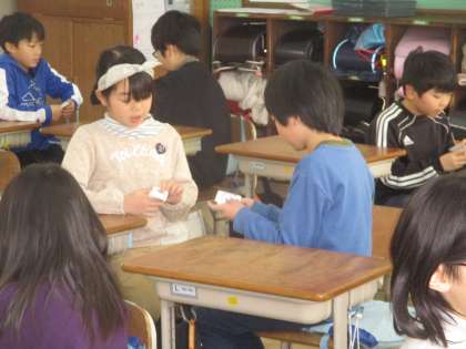 友だちに尋ねたい1枚を選び見せながらやり取りしていました。