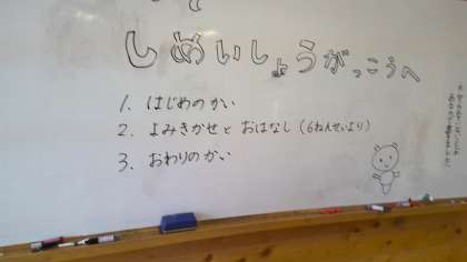 家庭科の学習で、地域の人とのつながりを広げて、深めていこうという学習があります。そこで、学校の最高学年ということで、来年度1年生になる幼稚園の子どもたちにタブレットを使って、紫明小学校の紹介やクイズをしたり、読み聞かせをしたりして交流をしました。