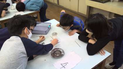 今日の理科では、ものが燃えるときの空気の動き方を線香で確かめました。