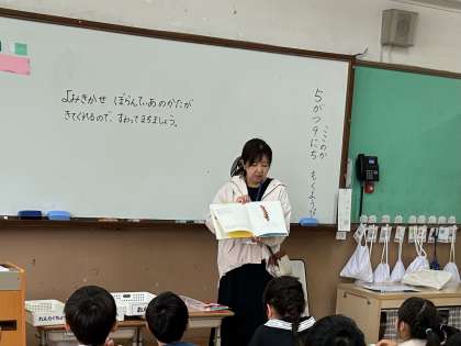1年生にとっては初めての朝の読み聞かせがありました。読み聞かせボランティアの方が来てくださって、絵本を読んでくださりました。1組は「ポットくんとミミズくん」「うんちしたのはだれよ!」、2組は「くるっとだーれ」「さるじぞう」を読んでもらいました。子どもたちは楽しそうに耳を傾けていました。最後は、読み聞かせボランティアの方に、感想とお礼をしっかり伝えることができました。次の読み聞かせが楽しみですね。