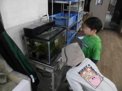 メダカの水槽や実験用ゴーグル、大きなテレビなどひまわり学級にはない沢山の“ステキ”を発見することができました。