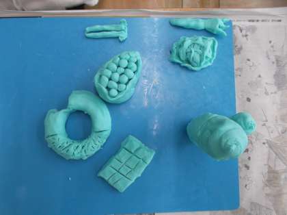図工では、「ねんどでごちそう なにつくろう」を学習しました。子どもたちは粘土をつかって、自分が大好きなごちそうをつくることができました。粘土を転がしたり広げたりして、楽しく活動することができました。