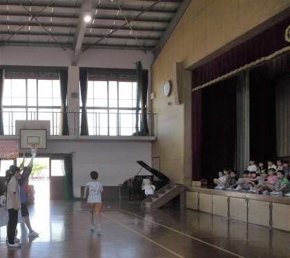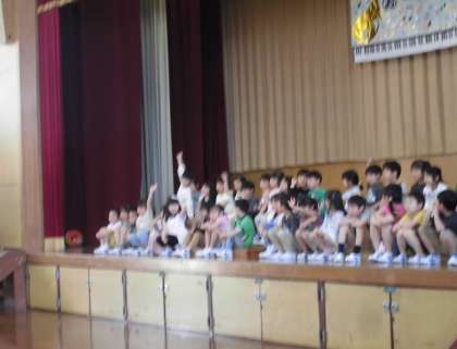 2〜6年生の児童が歌やダンス、クイズなどの出し物をしてくれ、1年生は楽しそうにその様子を見ていました。