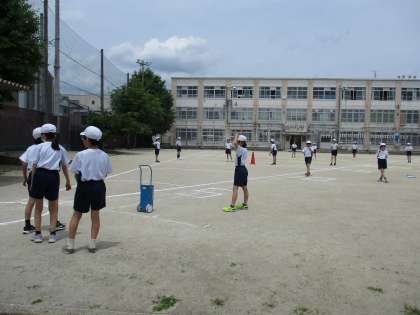 今日は、ソフトボール投げをしました。昨年の記録を超えようと頑張る姿が見られました。また「ナイス〜!」「その調子〜!」という友だちを応援する声かけも聞こえてきました。