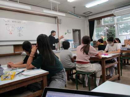 種子を切って、中はどのようになっているのか確認しました。また「なぜ子葉はしぼんでしまったのだろうか。」という学習問題で予想をしていきました。