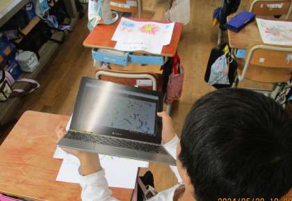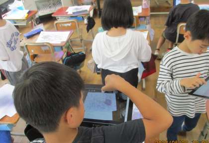 図工科の「絵のぐでゆめもよう」の学習で描いた絵をみんなで鑑賞しました。いいなと思う作品や、すごいと思う作品をGIGA端末で撮影して、鑑賞カードを作りました。