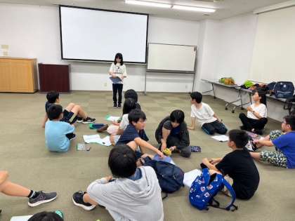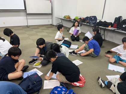 1日目最後の活動の様子です。個人で振り返りをした後グループで交流して、その後グループ毎に発表しました。
