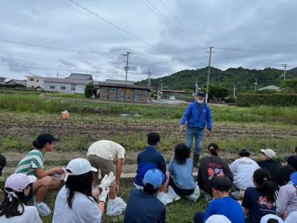 6年生修学旅行2日目9 淡路島牧場(玉ねぎ収穫体験スタート)