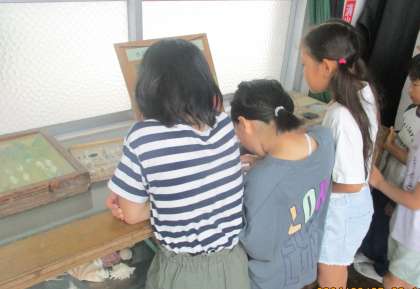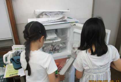 4年生は初めて理科室で実験を行います。理科室にはどのような実験器具があるのか、どんなものが置かれているのか、などを調べました。扉を開けて大きい顕微鏡を見ると、「うわぁすごい!」と初めて見るものもあり、新たな発見がありました。