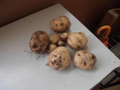 少しずつ土を掘り起こしてみると、大きな大きなじゃがいもが沢山。