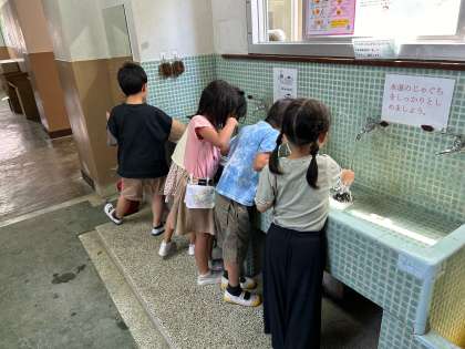 6月は「歯みがき強化月間」です。子どもたちは給食を食べた後、歯を磨いています。虫歯を防ぐためにも、これからも丁寧に歯みがきをしていきましょう。