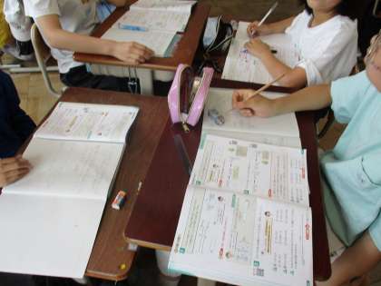 小数のわり算の学習を進めています。今日は、小数÷小数の計算の仕方を考えました。その後、グループでの学び合いをしています。