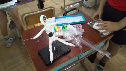 将来の自分をイメージして、姿勢を決めたり紙粘土で顔やからだをつくり始めたりしています。