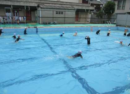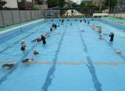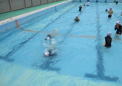 水泳学習の時期がやってきました。4年生は1年ぶりの水泳学習にテンションも高くこの日をとても楽しみにしていました。プールに入ると少し寒かったようですが、元気に泳いでいました。