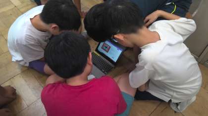 夏休みの自由研究の取り組みの交流では、調べ学習やプログラミング、科学工作など、友達の作品に興味津々の様子でした。