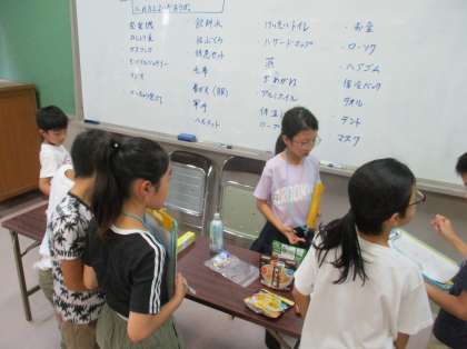 社会科の学習では、自然災害から自分たちを守るための自助、公助、共助について学習を行いました。子どもたちの声の多くに、自助でできることとして、防災バッグを作るという取組がありました。今回は、実際に家で用意している防災バッグをもってきてくれた児童がいらっしゃいましたので、どんなものが入っているかをみんなで確認しました。「こんなものも必要なんだ。」と子どもたちの中で多くの学びがあったようです。