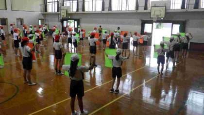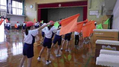 今年度の運動会の5・6年生の集団演技は、フラッグを行います。