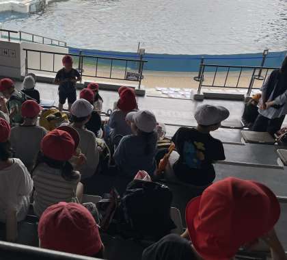 先日、京都市水族館に行きました。雨予報でしたが、子どもたちの元気のおかげか、移動中は小雨程度の雨で済みました。水族館に着いてからは班で協力して行動することができました。次の運動会も一致団結して頑張ります。