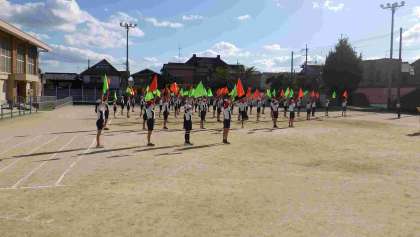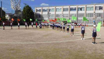 5・6年生は運動会の団体演技で、フラッグを使った演技を行います。