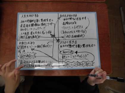 ・人を大切にする・自分を大切にする・めあてに向かう力・よりよく生きるをテーマに