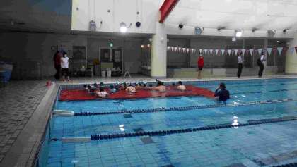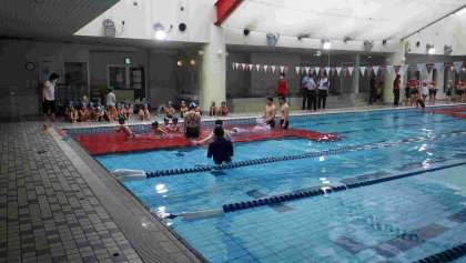 体操・シャワー・水慣れの後は、ペアでもぐったり、じゃんけんをしたりする活動を楽しみました。また、後半はボールを使った活動も行いました。