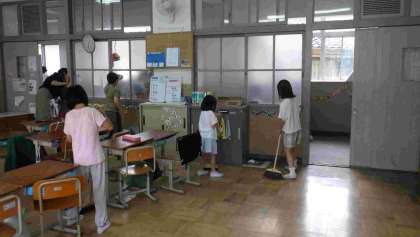 スマイリーグループで遊んだ後は、掃除もしました。高学年が低学年に掃除の仕方を教えたり、いつもとはちがう他の学年の教室の掃除を自分でやることを考えて掃除したりする素敵な姿がたくさん見られました。