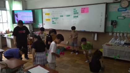 教頭先生が働いていた中国・上海のことや、中国の文化、食べ物、言葉について知ったり、クイズをしたり、中国の遊びを体験したりしました。