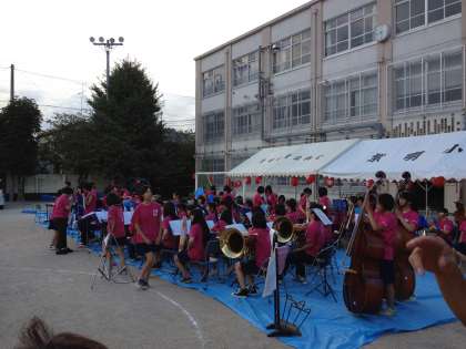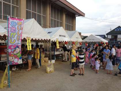 7月22日(日)に紫明夏まつりが開催されました。良い天気に恵まれ、たくさんの参加者で大盛況でした。模擬店には、ポップコーン、フランクフルト、みたらし団子、ヨーヨーつり等が並び、また、加茂川中学校吹奏楽部による演奏会、盆踊り、消防車の試乗等盛りだくさんの内容で子どもたちは大喜び。中には、浴衣で参加している人もいました。やはり、夏まつりには浴衣が似合いますね。