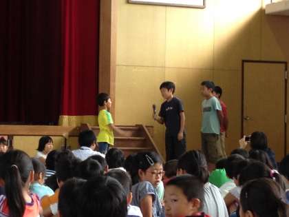 10月1日(月)に紫明タイムを行いました。今回は1年生と4年生が発表しました。1年生は「できるようになったこと」をテーマに発表しました。1年生は、入学してからまだ半年余りですが、大きな声で発表できていました。