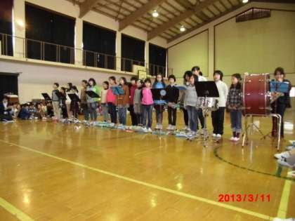 まず、音楽部活の人たちの演奏で始まり、各学年の出し物が披露されました。どの学年もお世話になった6年生への感謝の気持ちがあふれていて、6年生もしんみりと聞き入っていました。