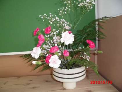 5月を迎え、学校ボランティア(華道)の方がお花を生けてくださいました。