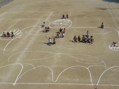 それを確かめるために運動場に描いてみました。