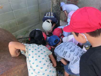2年生みんなで学校の中にどんな生き物がいるのか探しに行きました。
